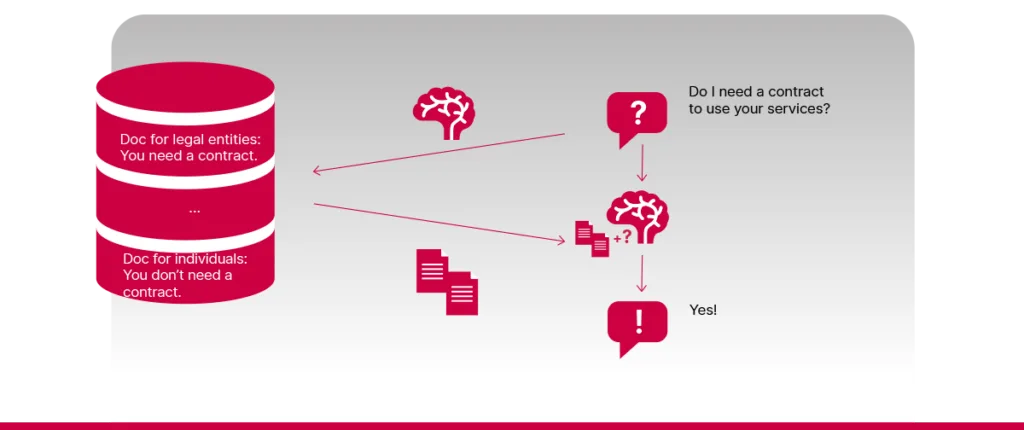 A simple RAG system doesnât know anything about the user or their role. If there are conflicting documents in the database â some meant for one group of users and others for a different group â the system might struggle to choose the correct context without more information from the user. For example, imagine that the RAG system has indexed two documents â one intended for legal entities saying that they must have a contract signed to do business, and the other one for individuals, stating that no contract is needed. If you ask whether you need a contract but donât specify that youâre a legal entity or an individual, the RAG system may provide the wrong answer. Â