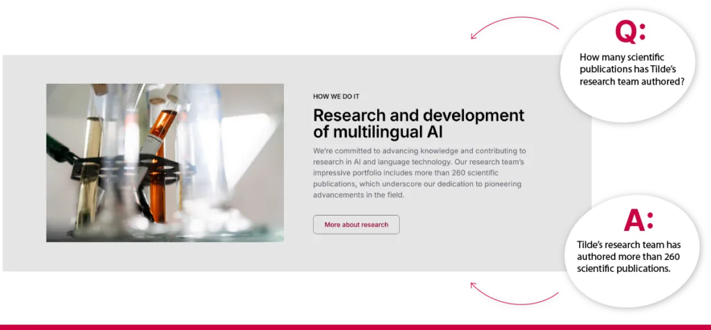 But great AI doesnât stop at functionality â it must also understand the language and culture of its users. Once trained, TildeLM will be fine-tuned specifically for RAG, enabling the system to better grasp local grammar, terminology and context â making it not just smart but truly multilingual.Â
